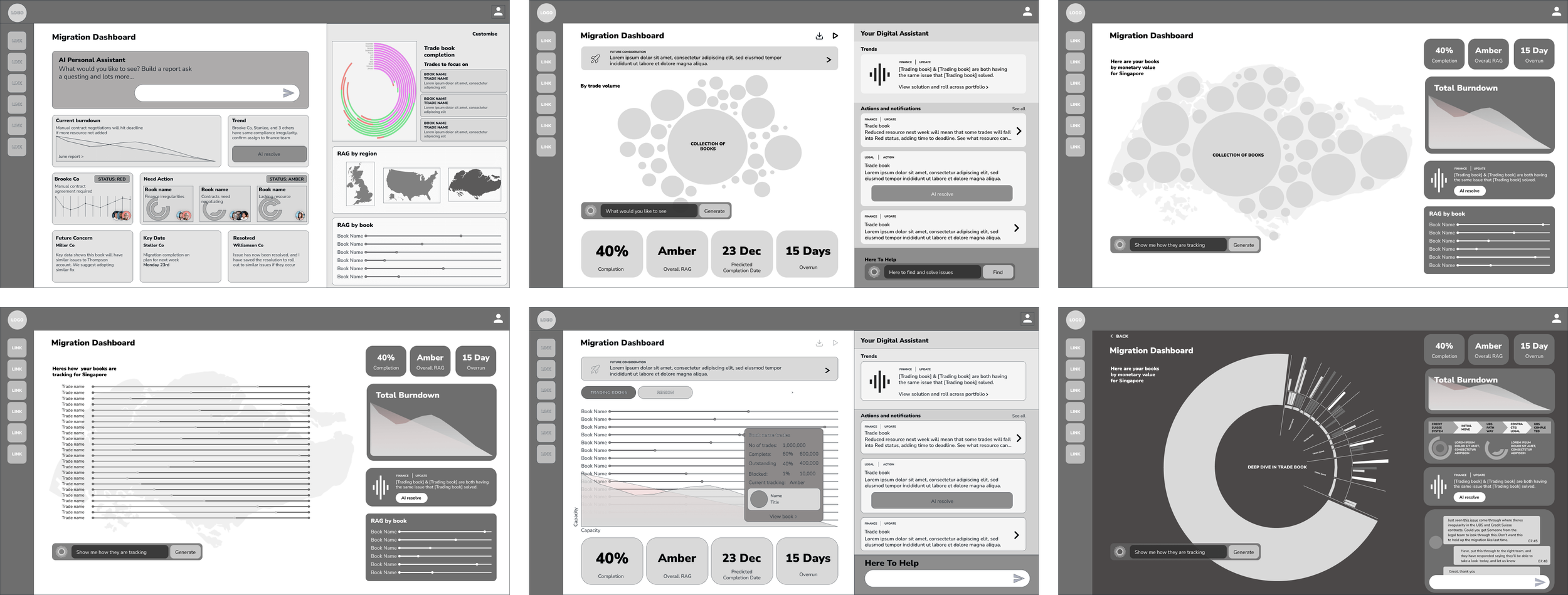The challenge: UBS was absorbing Credit Suisse, with thousands of trades needing to migrate across systems. Our brief wasn’t to build the final tool, it was to start a conversation. EPAM’s Financial Services VP and Digital Director asked us to craft a concept that would open doors, demonstrate vision, and showcase the value of combining smart UX with modern AI capability.