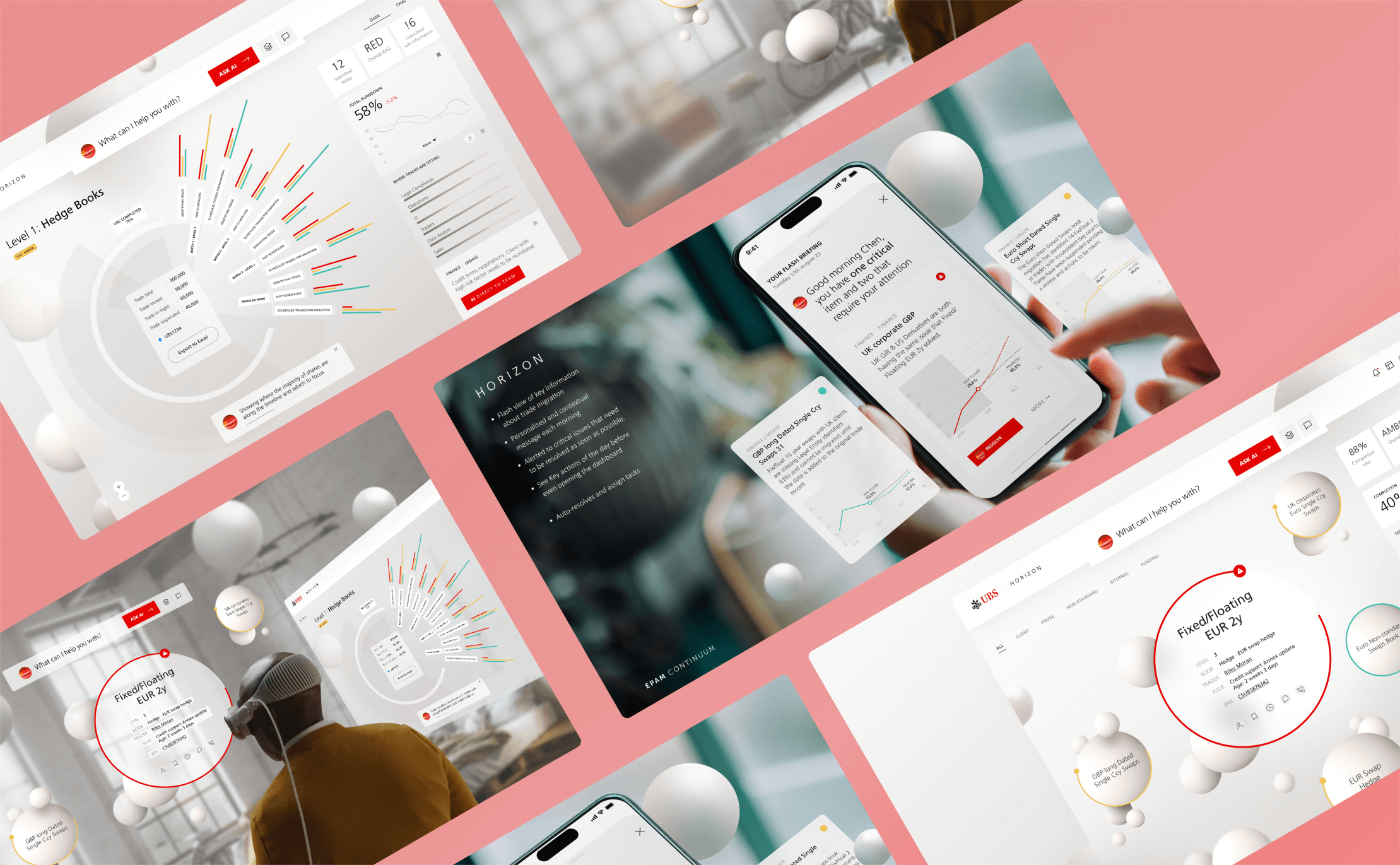 A future-facing AI concept for UBS, tracking share migration through an intuitive portal designed to provoke conversation and position EPAM as a strategic partner.