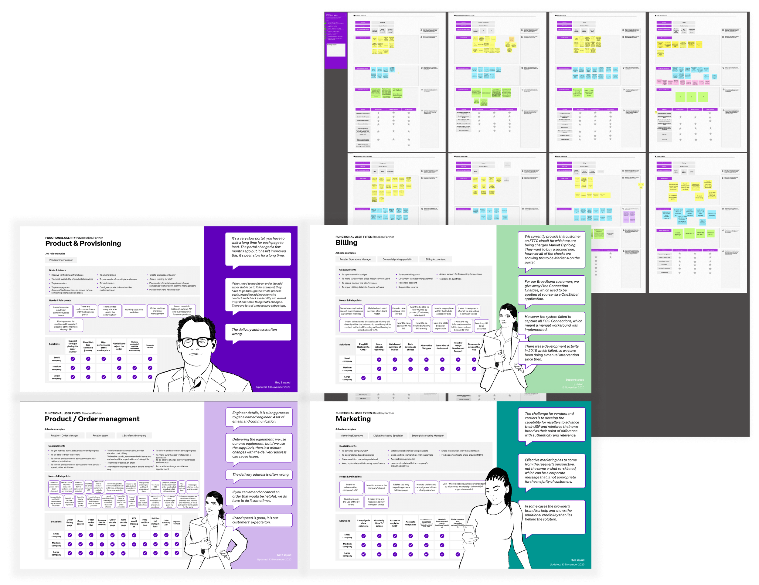 From these sessions, I created personas representing the primary reseller groups (e.g. Business Level, Partner Plus, Normal Business). These personas were grounded in the earlier research and workshop outputs, ensuring they were a practical tool to guide design and prioritisation.