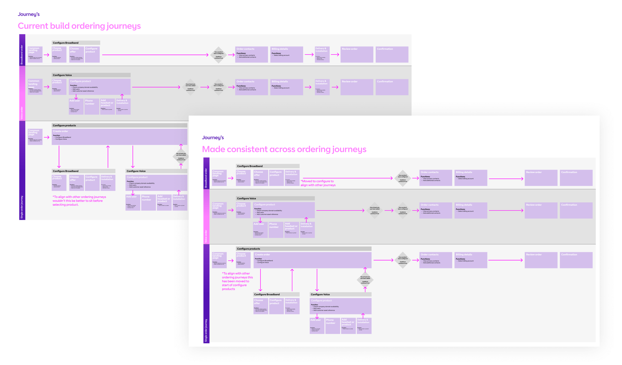At this stage, different squads had begun to drift in separate directions, interpreting requirements in inconsistent ways. To reduce development overhead and rework, I initiated a journey mapping exercise across all live processes.